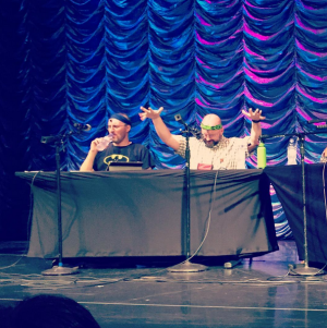Writing Excuses recorded four episodes on the Alhambra Theater that afternoon, and wore some very snazzy headbands to hold their microphones. I think it’s a good look, and it’s really going to take off.
